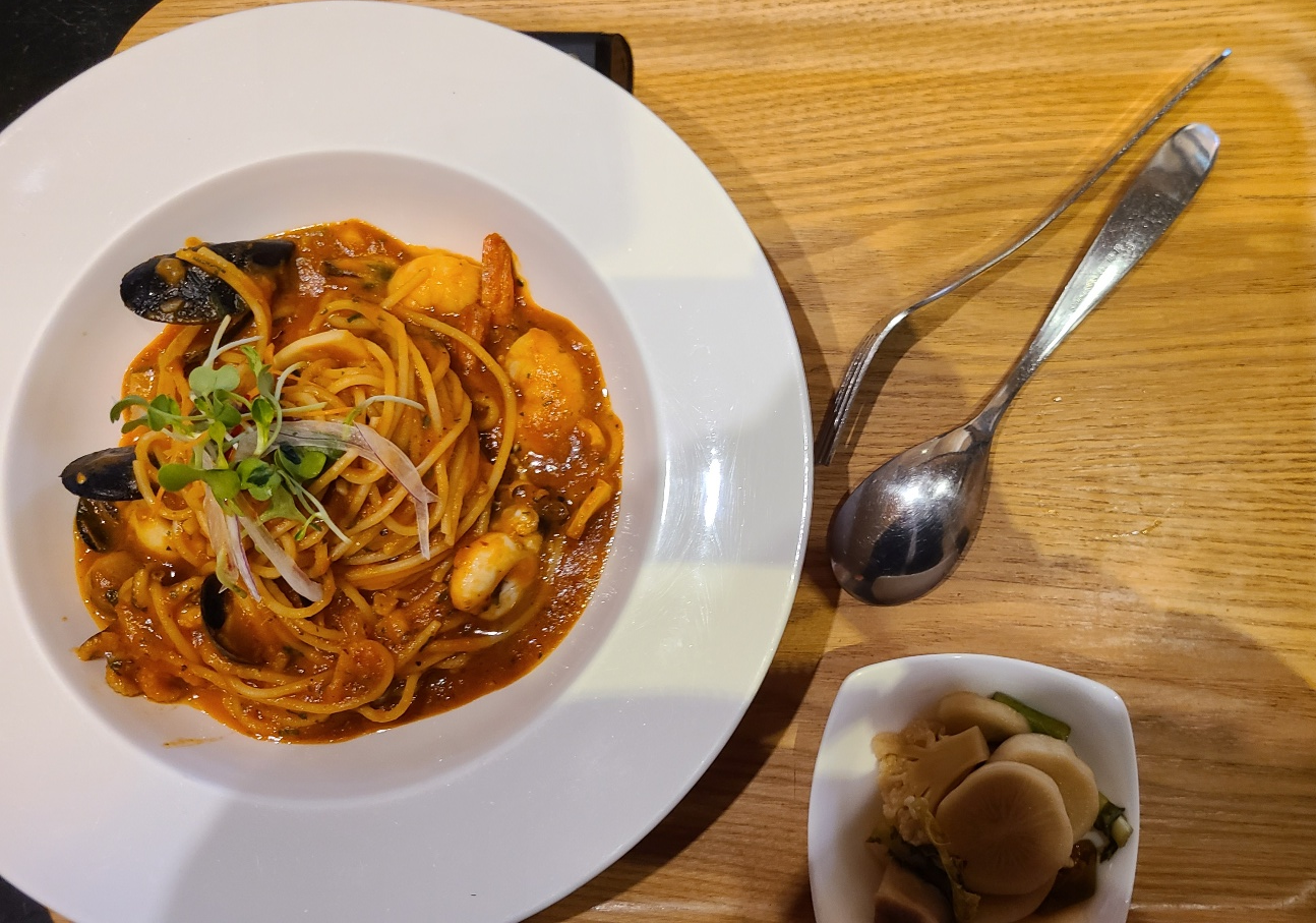 한창 힘들 때 눈앞에 파스타집이 있어서 노선을 변경했습니다.