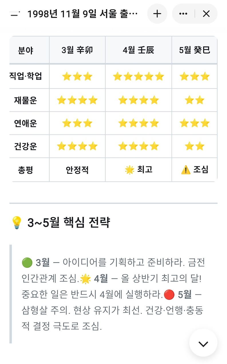 제 3~5월 운세입니다. 참고해주세요